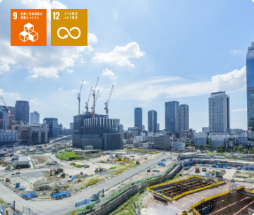 CO2排出量データベース(※)を基に、建設工事時におけるCO2排出量を算出。将来的には建築物のLCAを算定することで、持続可能なインフラづくりに貢献します。