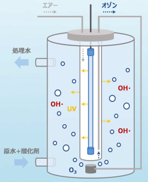 このOHラジカルが、通常の生物処理や物理化学処理では分解が困難な有機物を強力に酸化分解するため、排水の高度処理や再利用水の前処理として非常に有効です。薬品使用量の削減、処理時間の短縮、そして最終的な環境負荷の低減に貢献し、多様な産業排水の課題解決に貢献します。