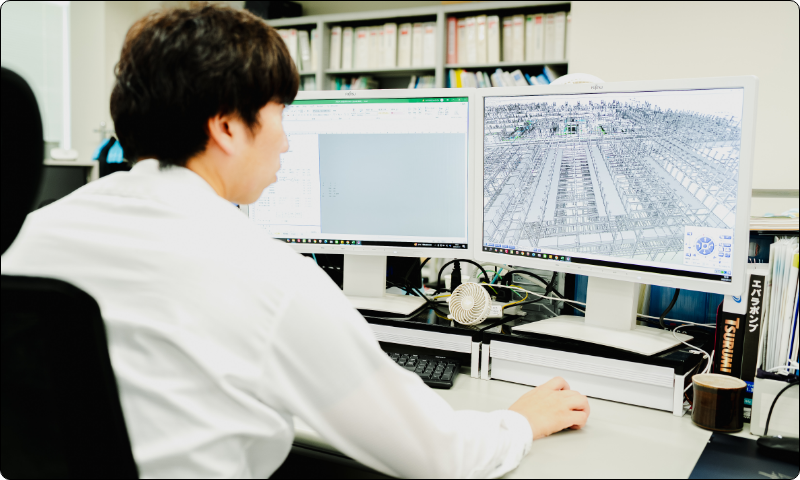 エス・エルの技術の屋台骨となる部署です。設計計画を立て、機器選定や図面作成、協力会社との連携をしながら、施工資料の設計を行います。